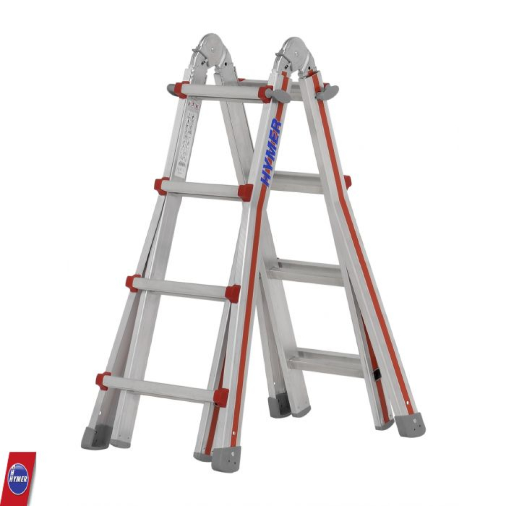 - In hoogte verstelbare ladder, vrijstaand en ook op trappen te gebruiken.